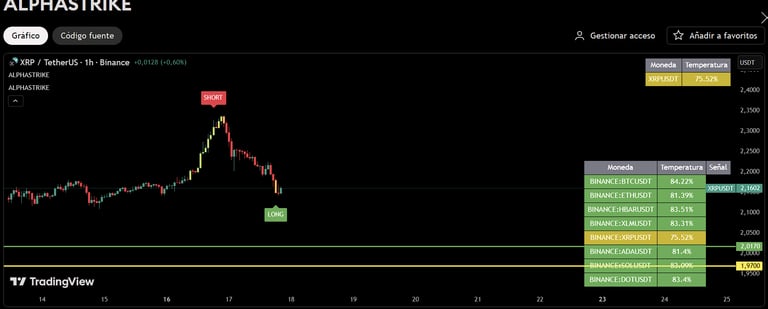 AlphaStrike es un indicador profesional para TradingView diseñado para detectar rebotes del mercado en criptomonedas, índices y forex con una precisión superior al 80% (y en muchas señales, +90%).