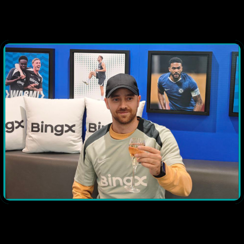 Colaborar con exchanges tan relevantes como BINGX y ser invitado a eventos VIP del Chelsea donde pude conocer a los jugadores en persona.